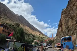 The roadside restaurants are an experience themselves. Tables literally hang over the river. Order trout fresh from the water below, tagine with vegetables from the garden, or just mint tea while watching the river flow. Prices are tourist-level (100-150 MAD for a meal) but the setting justifies it.